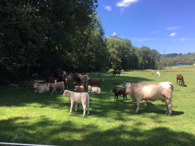 Wir haben Mutterkühe mit ihren Kälbern, Pferde, Esel, Gänse, Hühner, viele Katzen und natürlich unseren Hofhund. Unsere Tiere leben in Offenstallhaltung und können sich auf 17ha frei bewegen.